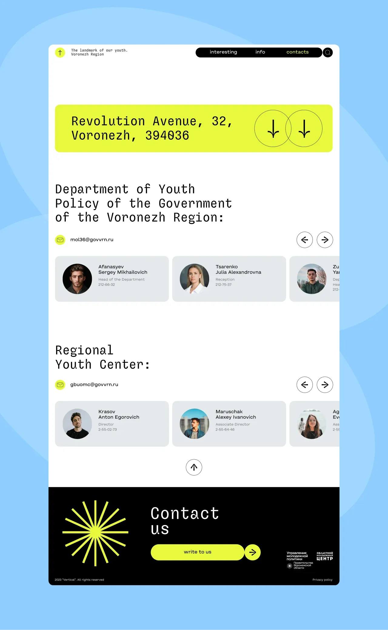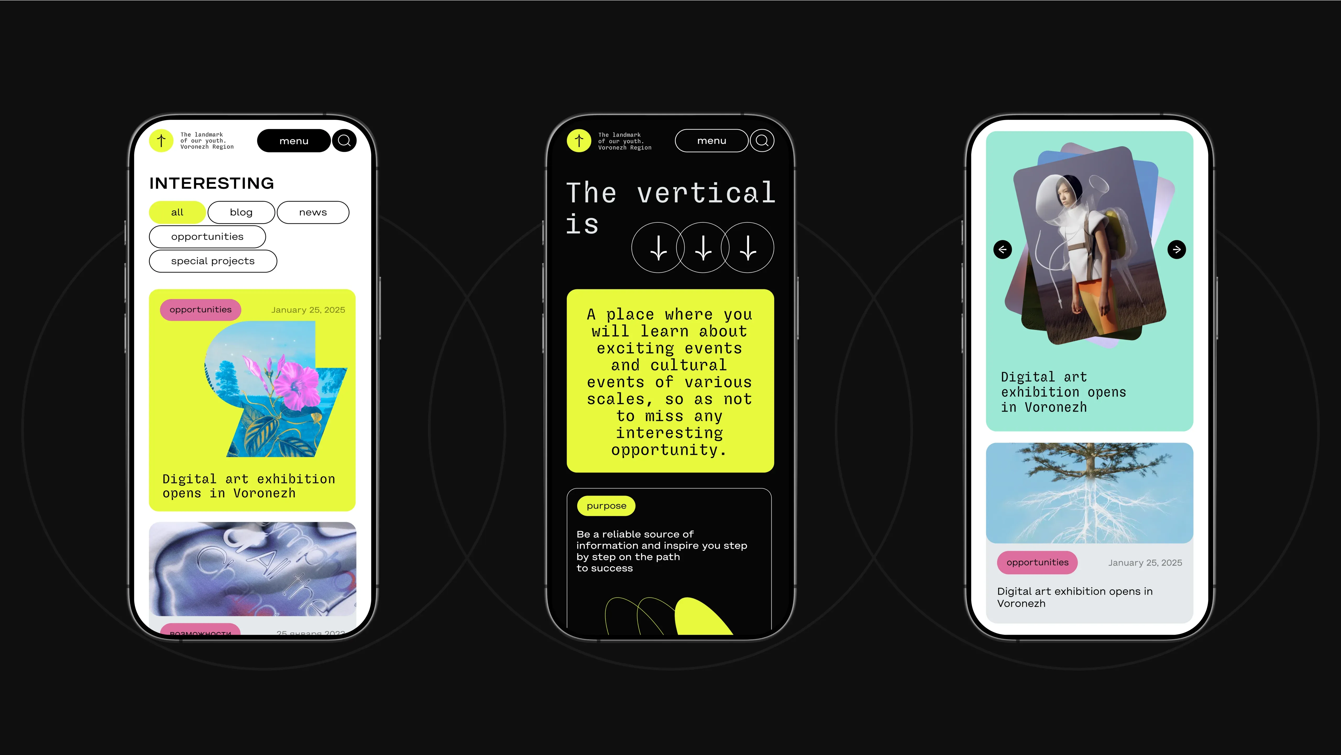В результате получился яркий сайт с удобной навигацией, на котором собраны главные события молодёжной жизни города. Он интуитивно понятный, а главное — с ним легко взаимодействовать не только пользователям, но и клиенту. «Вертикаль» уже отправилась в самостоятельное плавание, а мы с гордостью смотрим, как она задаёт движение молодёжи Воронежа и собирает награды на конкурсах.