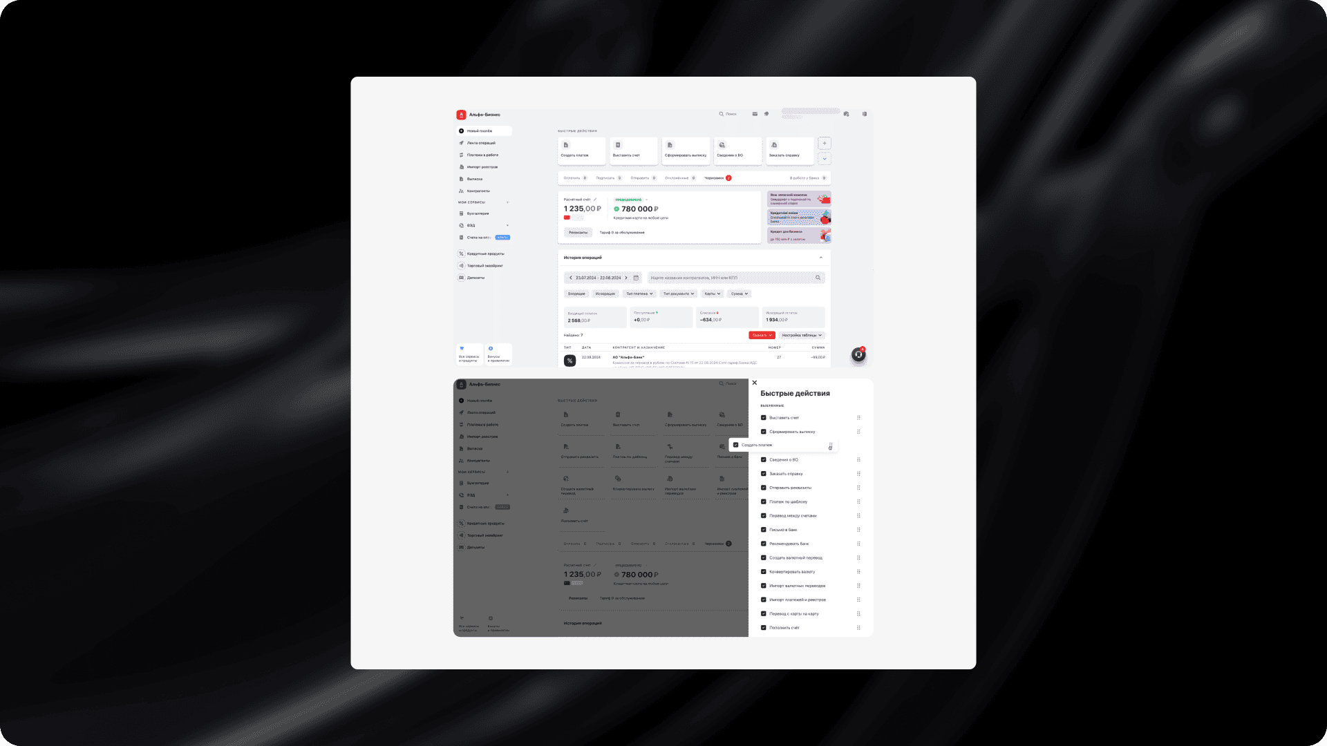Альфа предложил интуитивный интерфейс с продуманными инструментами, которые делают выполнение стандартных операций дистанционного банковского обслуживания быстрее и эффективнее.