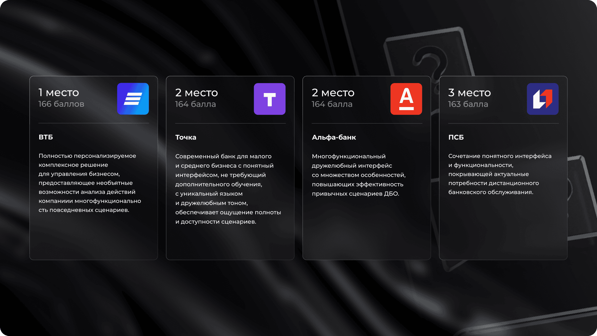 В 2024 году лидерами по качеству реализации базовых пользовательских сценариев в банковском обслуживании МСБ стали четыре банка.