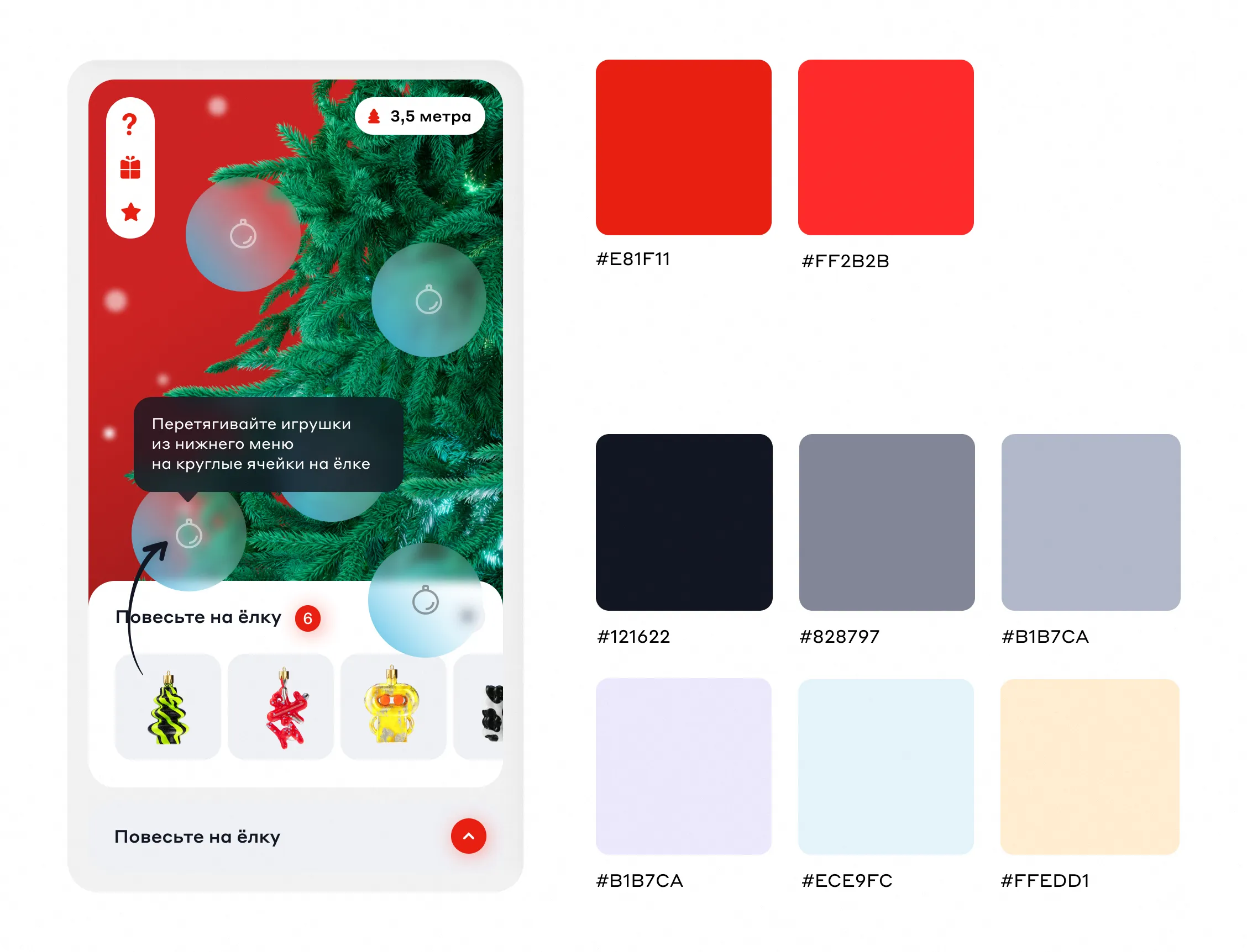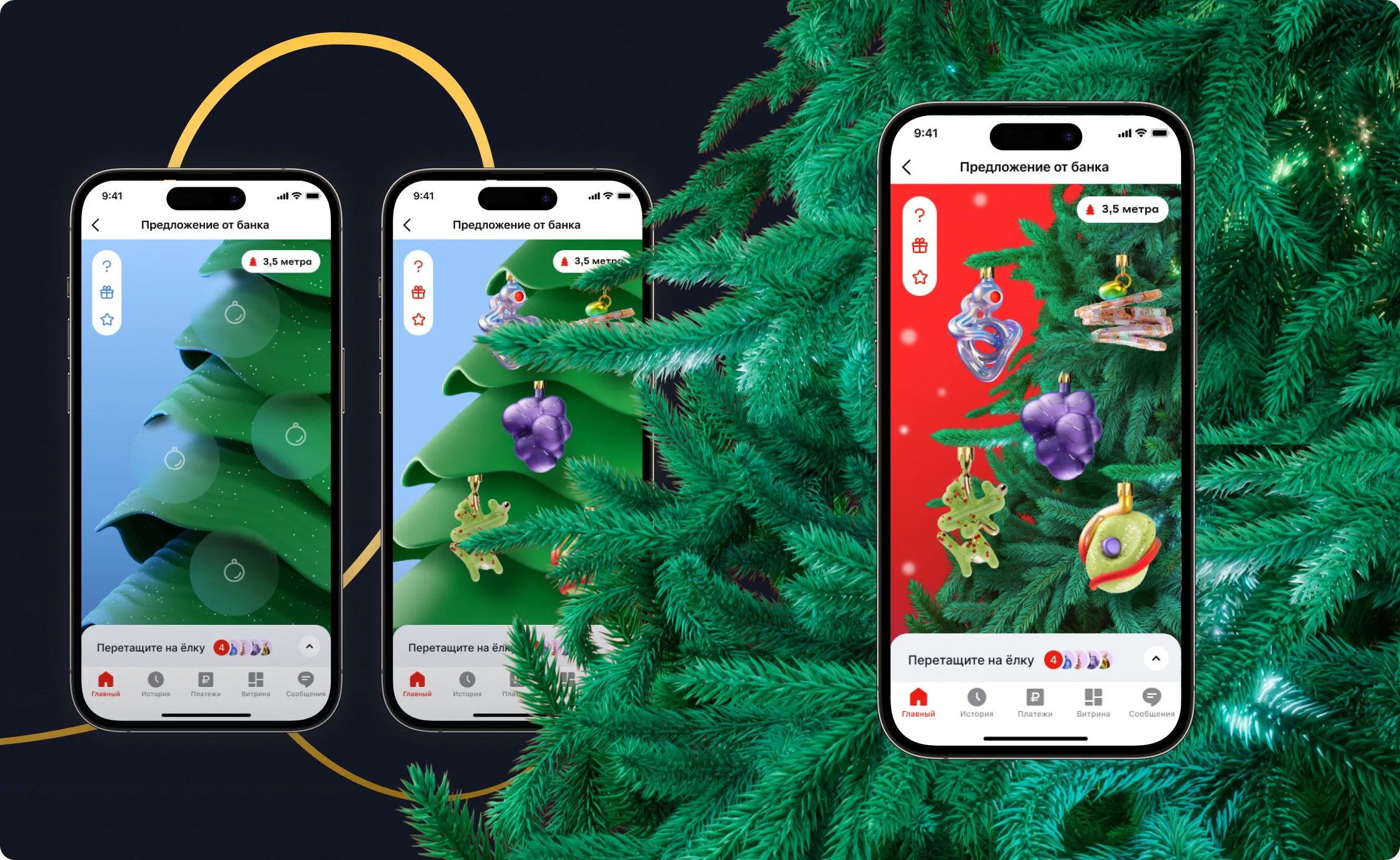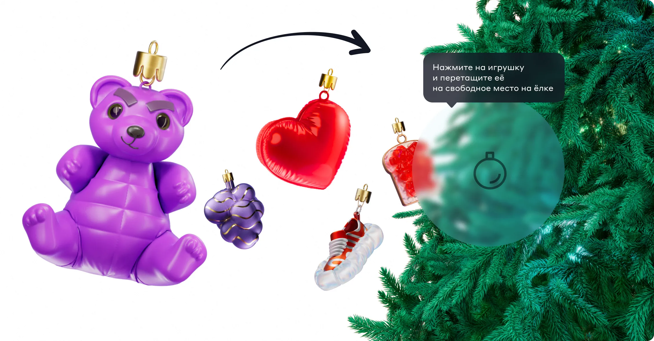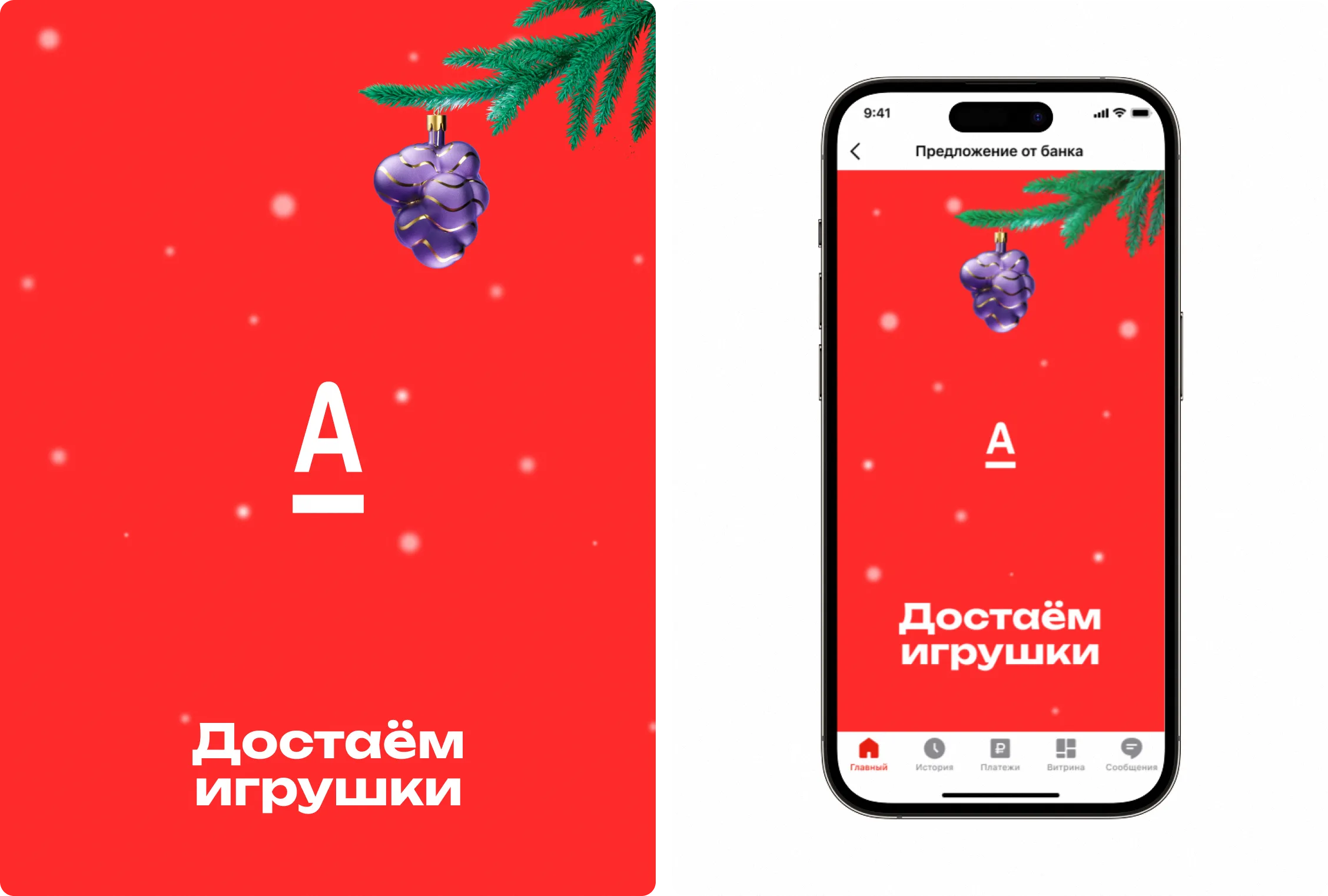 В предновогодней суете к нам обратился Альфа-Банк с интересным праздничным проектом. Нужно было повысить частоту возвращения пользователей в приложение банка. Для этого решили разработать увлекательную мини-игру, через которую банк мог бы показать клиентам их итоги года, подарить подарки и показать специальные предложения — всё в нативном и даже уютном формате. А что может быть уютнее, чем наряжание ёлки? Вот и мы решили, что это идеальный формат, и принялись разрабатывать комплексный дизайн мини-игры.