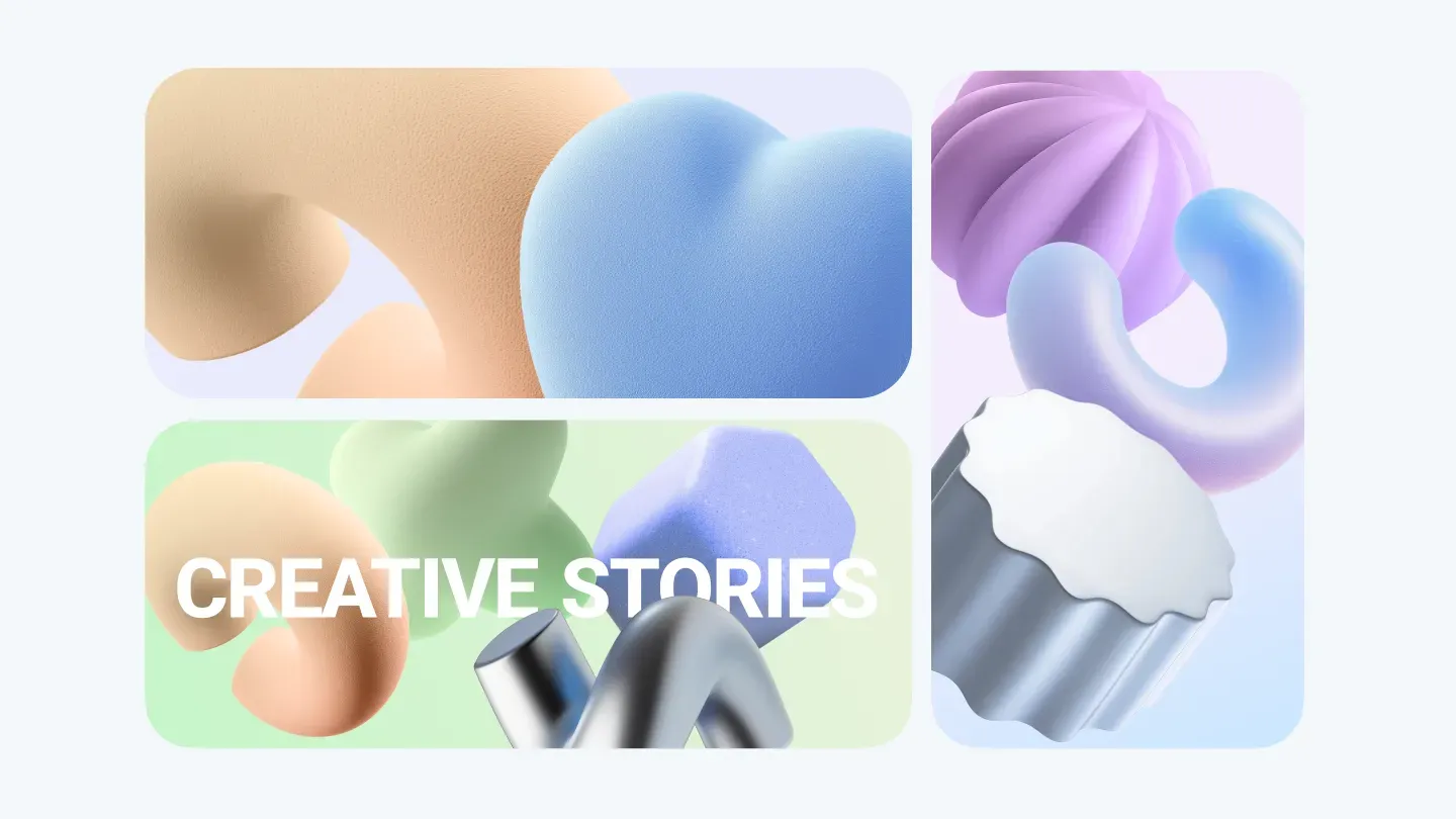 Мы создали набор сгенерированных 3D-иллюстраций, которые удобно собирать в композиции. Также разработали инструкцию для создания промо-материалов, чтобы клиент мог самостоятельно пополнять коллекцию новыми формами и фактурами, обеспечивая долгосрочное развитие визуального языка.